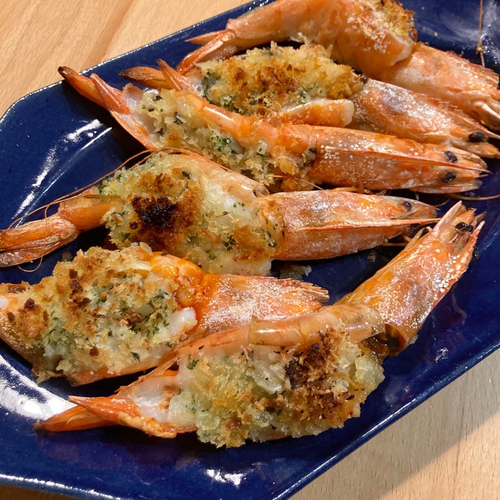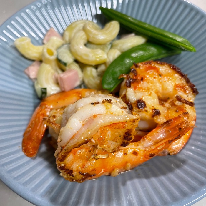 【エビの香草焼き】庭で採れたパセリ・ローズマリー・レモンタイムと...