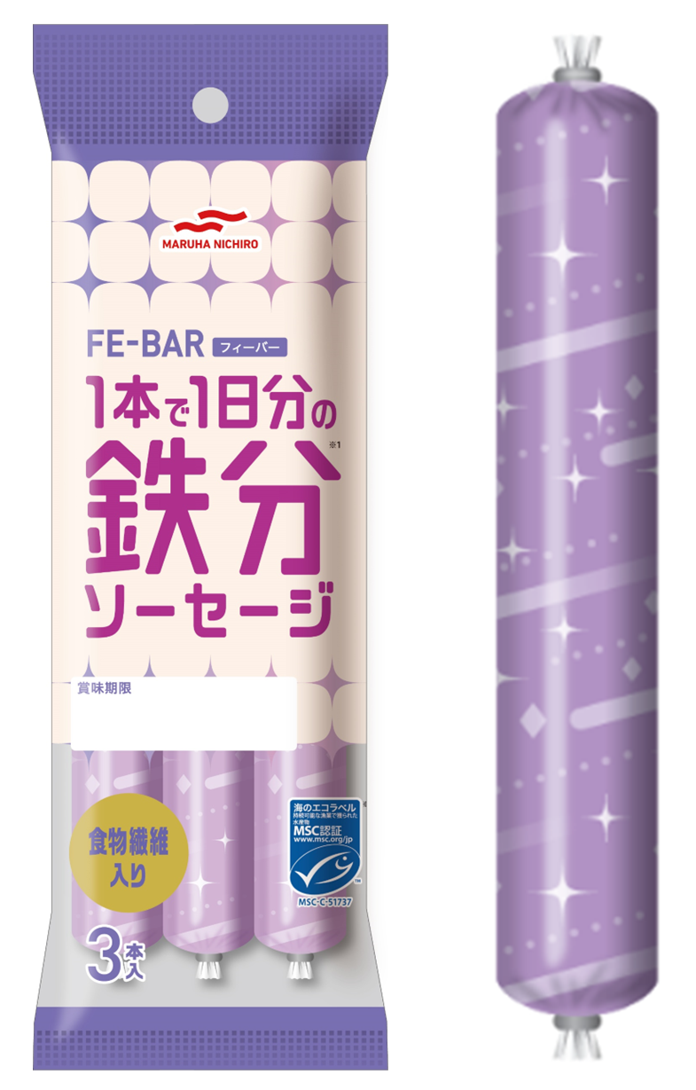1本30gあたりに鉄分7.3mgを配合したフィッシュソーセージで、1日に必要とされる鉄分6.5mg(※1)を摂取することができます。また、たんぱく質や食物繊維など、現代人に不足しがちな栄養素も摂ることができます。