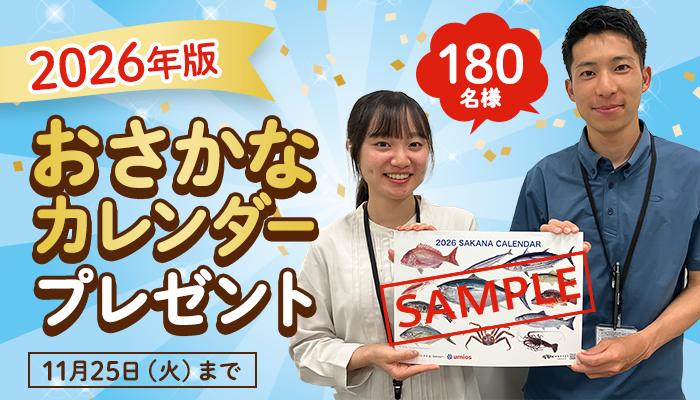 毎年ご好評をいただいているマルハニチロの年末恒例「おさかなカレンダー」を、今年も抽選で180名様にプレゼントします。