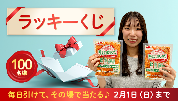 1日1回引けて、その場であたりが分かる「ラッキーくじ」。毎日1名様に「マルハニチロの今月のおすすめ商品」が必ず当たります。